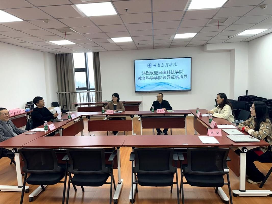为深入推进教育科学学院高质量发展进程,11月7日,教育科学学院院长李小丽、教师李正淼一行前往重庆文理学院师范学院开展交流学习。重庆文理学院师范学院院长贺能坤、副院长黎丙松、学前教育系主任陈琴、办公室主任阙雷以及教师代表吕晓博士参加会议。贺能坤对李小丽一行表示热烈欢迎,并详细介绍了师范学院自成立以来的发展历程,展示了学院在学科与学术平台建设上的成就,以及在人才培养和教学科研领域所取得的成果。李小丽向对方的热情接待表达了诚挚的感谢,并介绍了河南科技学院及教育科学学院的相关情况。随后,双方围绕本科生专业设置与课程建设、研究生招生与培养机制、骨干教师科研能力提升策略以及高层次人才招聘等展开了深入而细致的交流。双方一致表示,期待在未来能够进一步加强沟通与协作,携手共进,共同推动教育科学领域的繁荣发展。