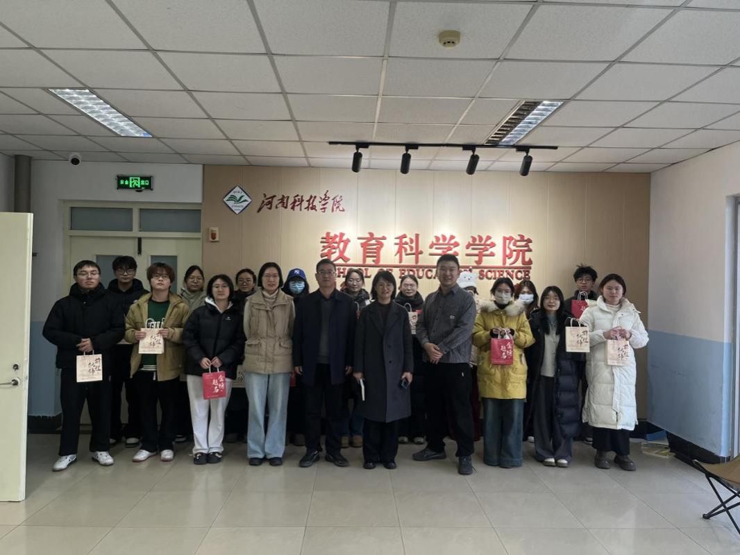 12月15日,教育科学学院在0号楼906会议室举办2025年考研慰问会。教育科学学院党委书记刘晓杰、院长李小丽、党委副书记李鹏、2022级辅导员王立霖及考研学生代表参加会议。