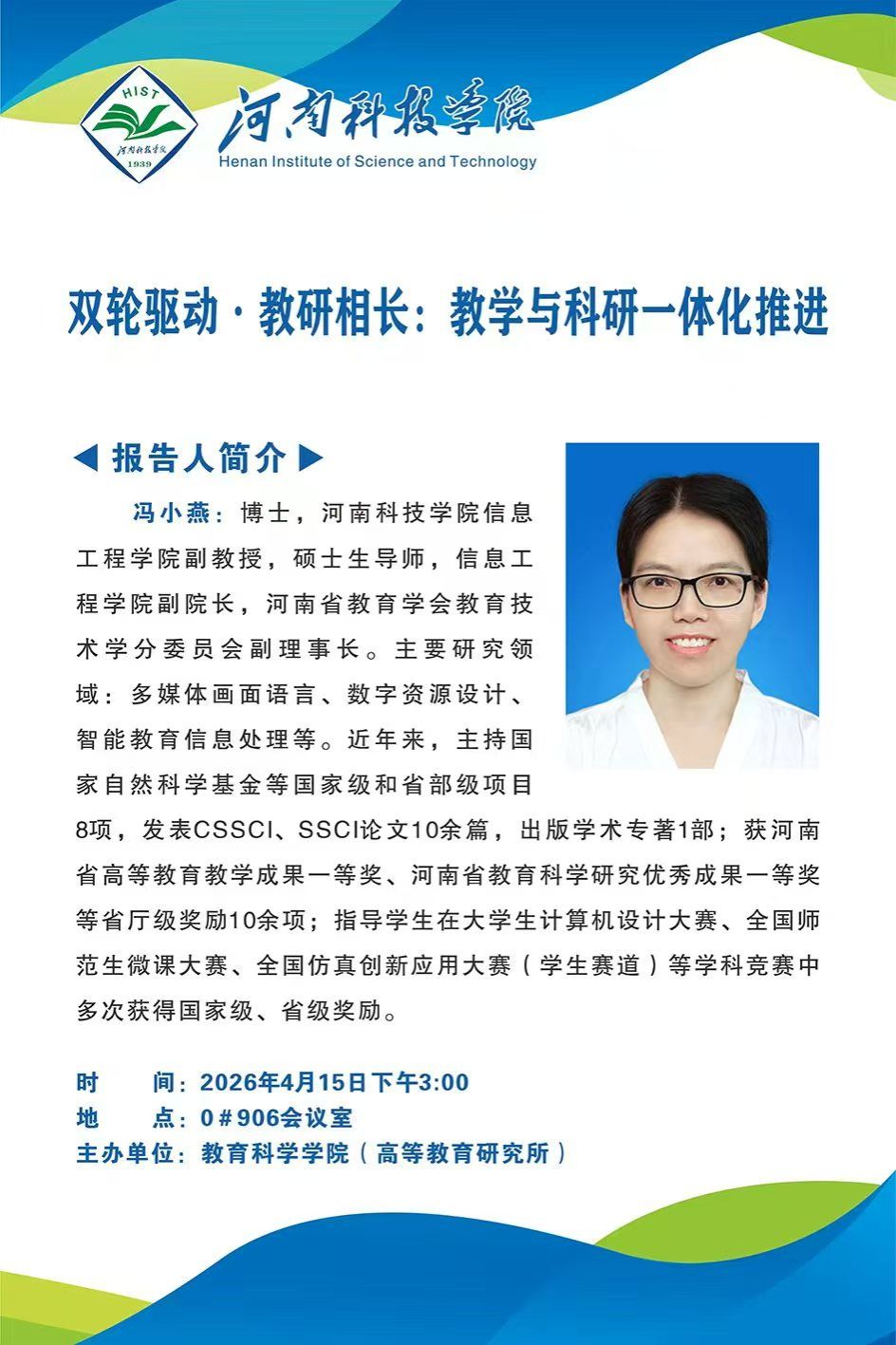 联系地址:河南省新乡市华兰大道河南科技学院教育科学学院 邮政编码:453003